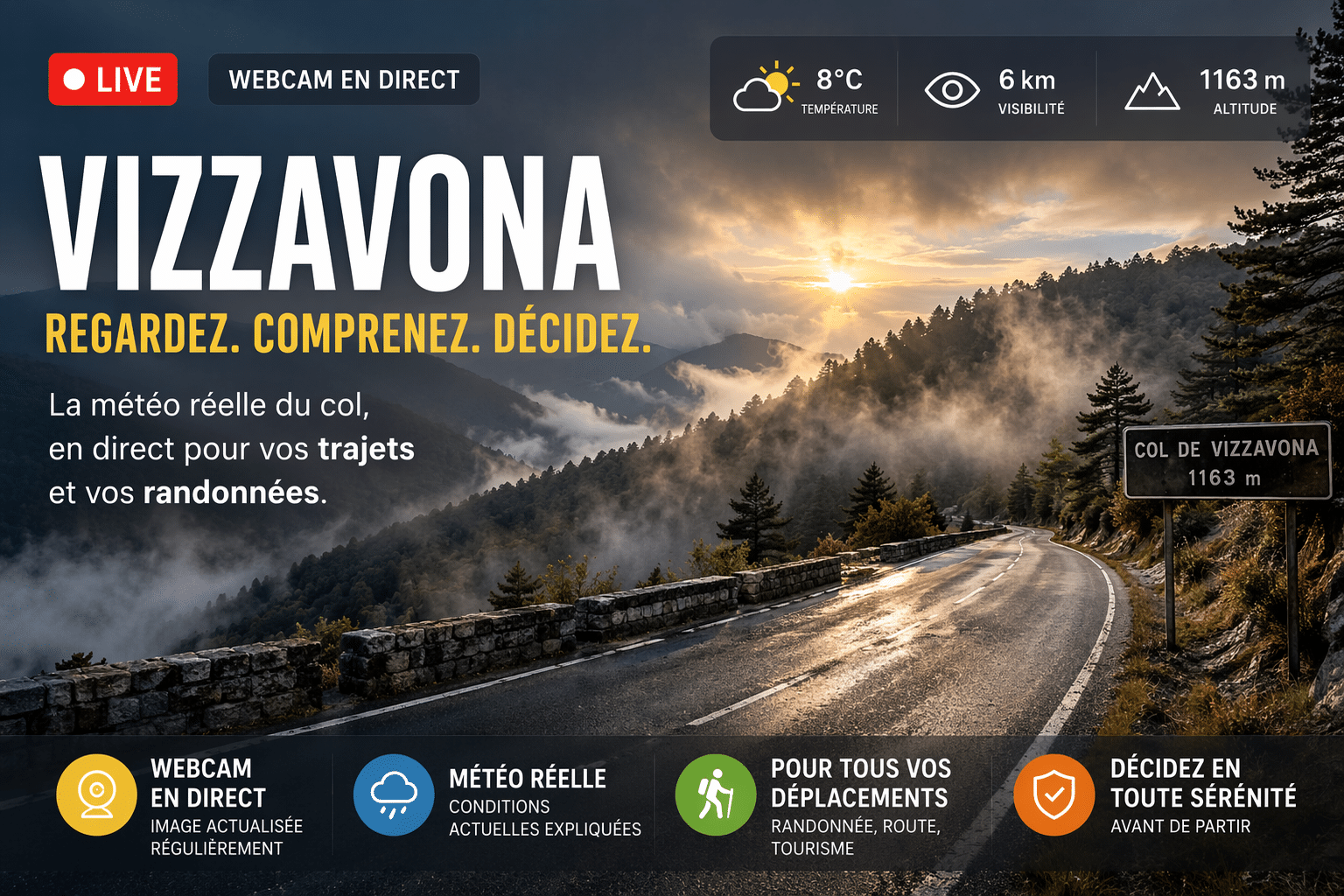 Webcam Vizzavona en direct : météo réelle, visibilité et conditions du col expliquées