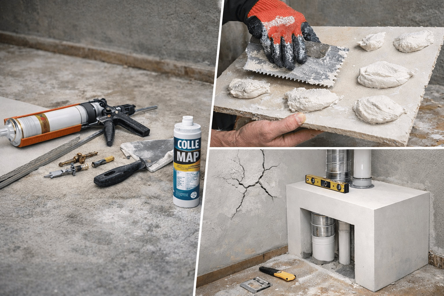 🧪 La colle MAP peut remplacer une ossature, mais elle exige un collage méthodique et un maintien temporaire.