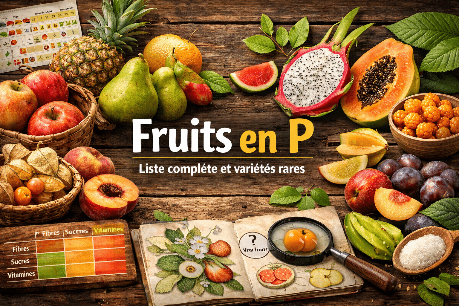 🍏 Plus de 20 fruits commencent par P : des incontournables (pomme, poire) aux curiosités (plaquebière, pitaya).