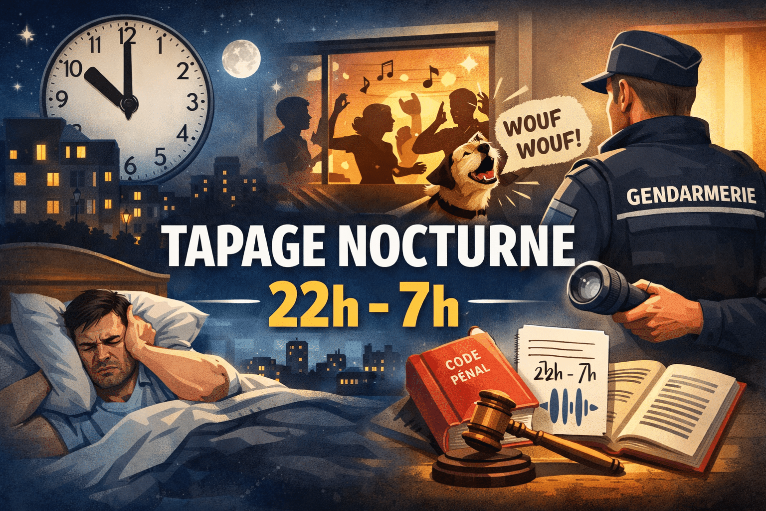 🕙 Le repère le plus retenu pour le tapage nocturne est 22h à 7h, car il correspond au temps habituel de repos.