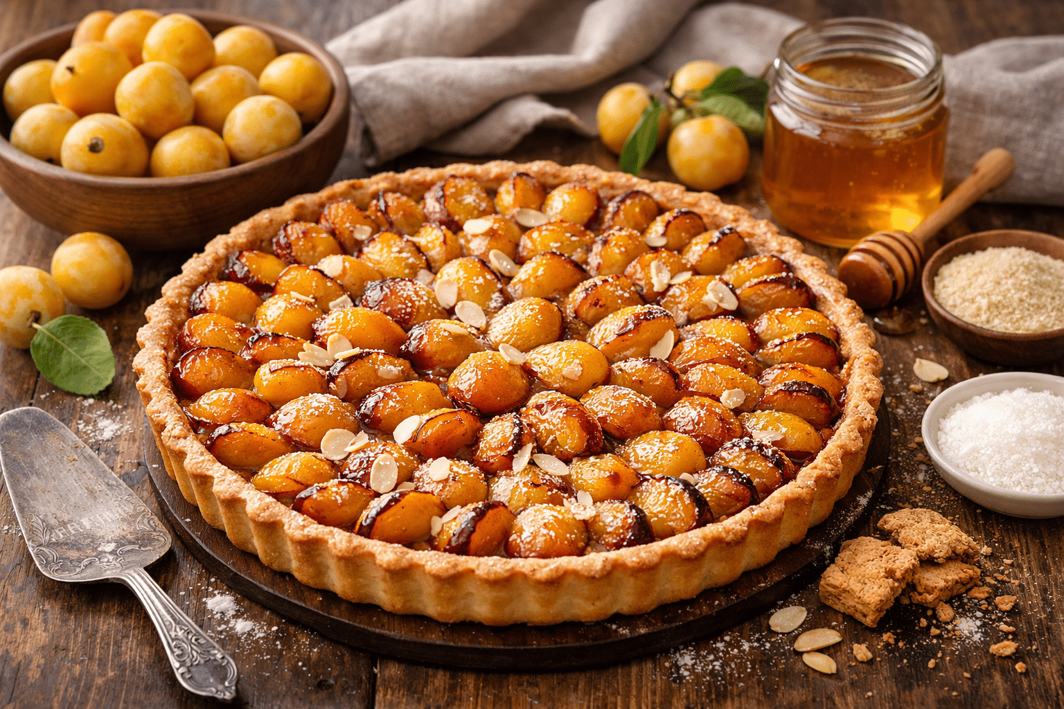 La tarte pâtissière, elle, pense texture et découpe nette : base plus riche (crème d’amande ou appareil), cuisson maîtrisée, et parfois finition brillante. Son avantage est clair : elle “porte” le fruit et stabilise le jus. Son risque : masquer le goût de la mirabelle si on charge trop.